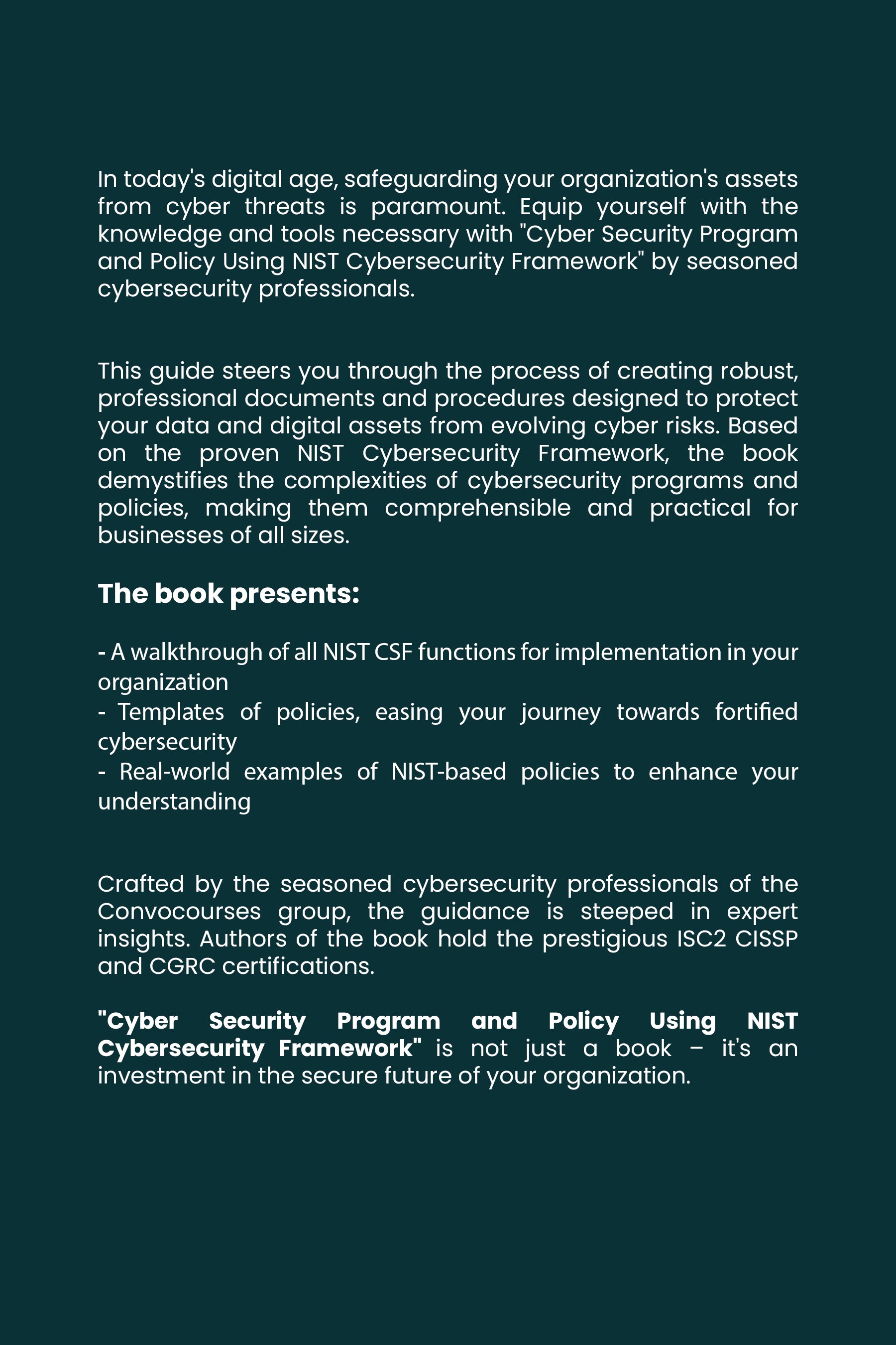 - Book 2: Cyber Security Program and Policy Using NIST Cybersecurity Framework